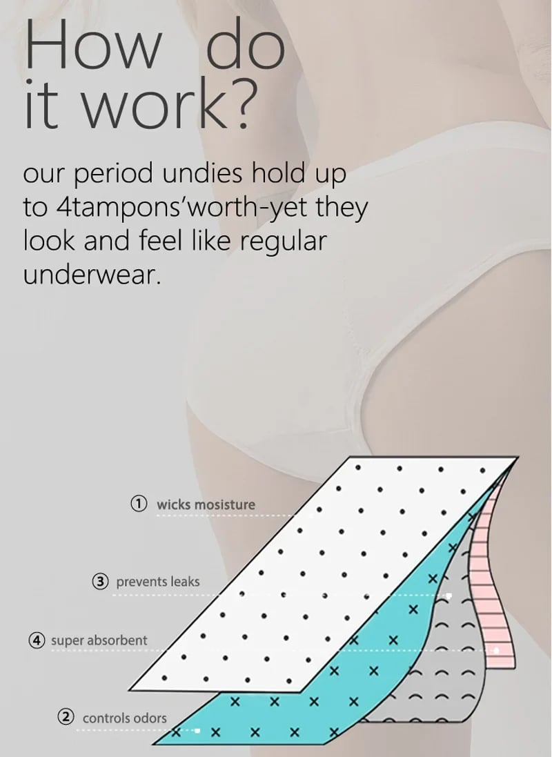 Δεν υπάρχει πλέον απογοήτευση ή δεύτερες αμφιβολίες για τον εαυτό σας! Η τεχνολογία μας θα εμποδίσει κάθε είδους διαρροή που θα έχετε. Αυτά τα εσώρουχα χωρίς διαρροές σας προστατεύουν από τις περιόδους, το κατούρημα και τον ιδρώτα. Φανταστείτε πόσο χαλαρή θα νιώθετε όταν δεν θα χρειάζεται πλέον να ανησυχείτε και να ελέγχετε συνεχώς τον εαυτό σας.